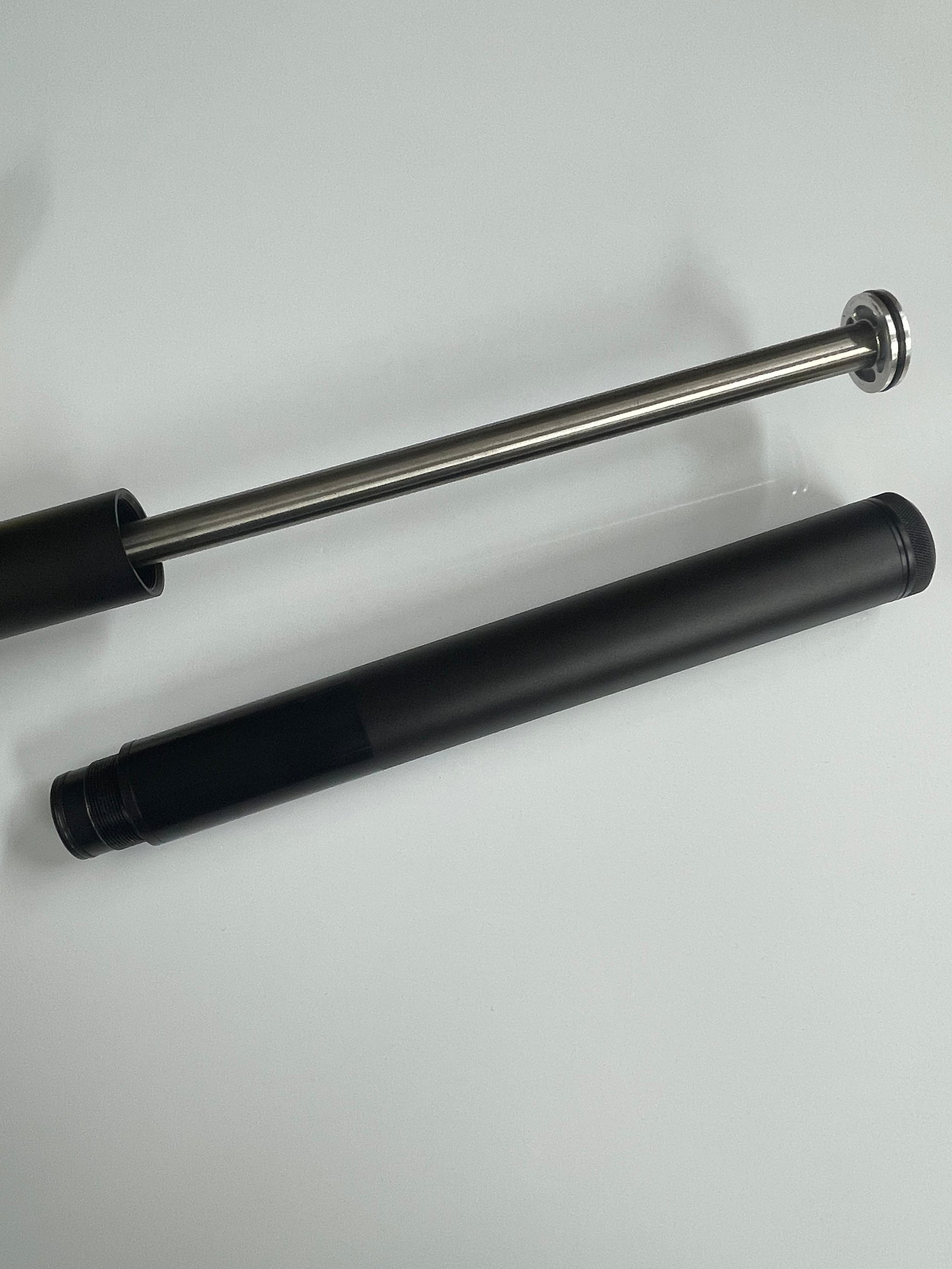 This is an extension made for the Panthera compact. It’ll allow you to convert from 380mm to 500mm. The current extension will only work with .25/.30caliber since the length of the shroud is different. You will need to swap your existing parts to make it work (barrel adapter, liner,jam nut, etc…). CNC machined and blk anodized. Made in the USA.